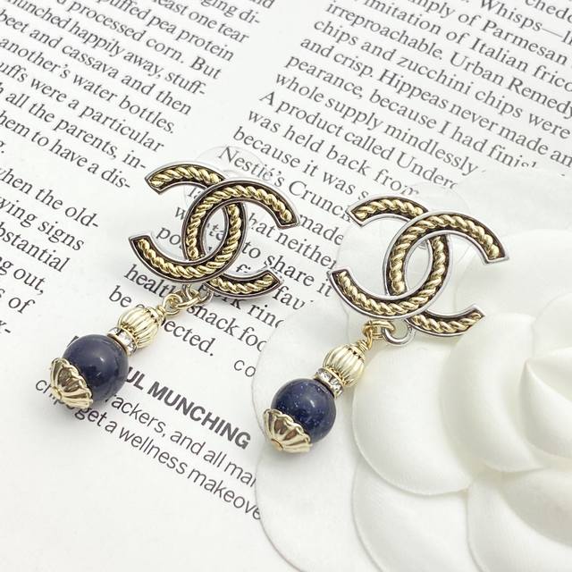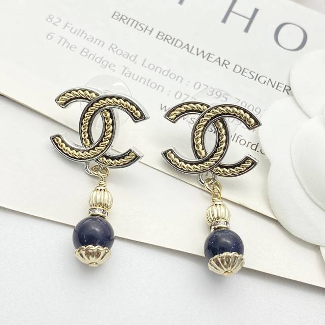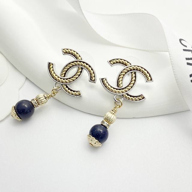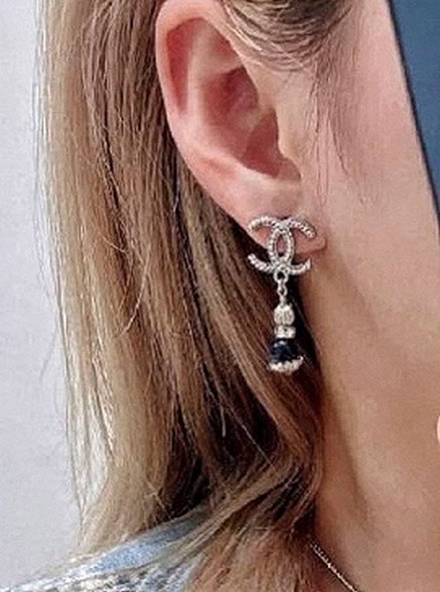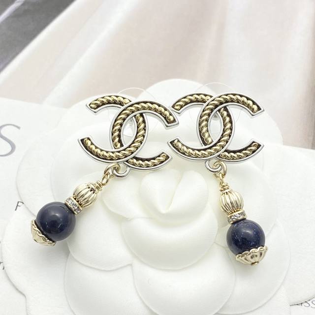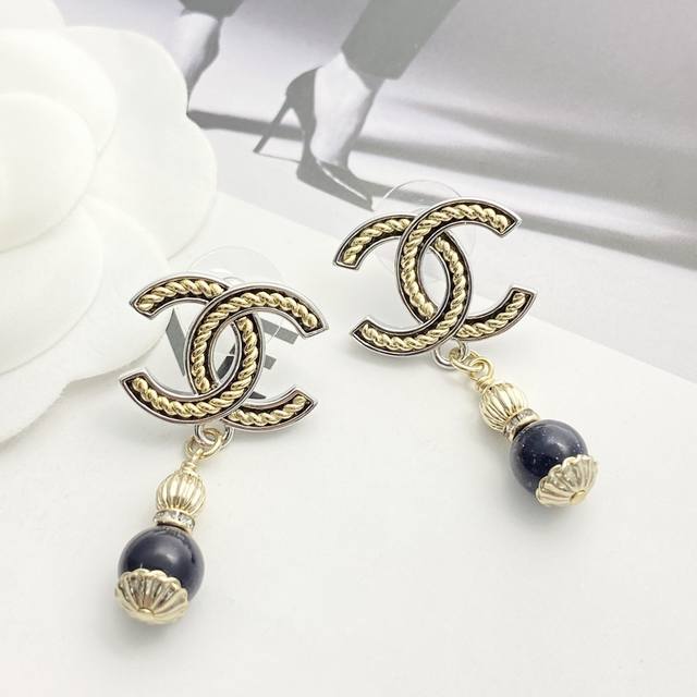 香奈儿耳钉热销爆上新Chan 25 黑曜石吊坠银边金属黄麻花双C耳环细闪黑曜石吊坠黄色螺旋麻花双C设计银色系清冷大气又如繁星闪耀的夜空上耳酷酷的满满的松弛感~复
