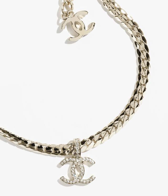 香奈儿项链热销爆上新 Chan 24 蛇骨双C项链 柔软细腻的高级光泽感,镜面的反射作用闪闪发光!浅金搭配不显浮夸,水钻双C Bling Bling很精致~装饰
