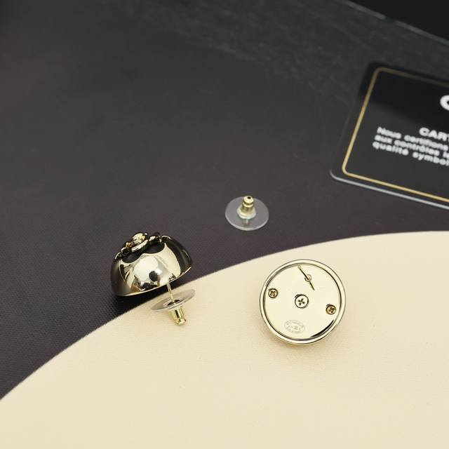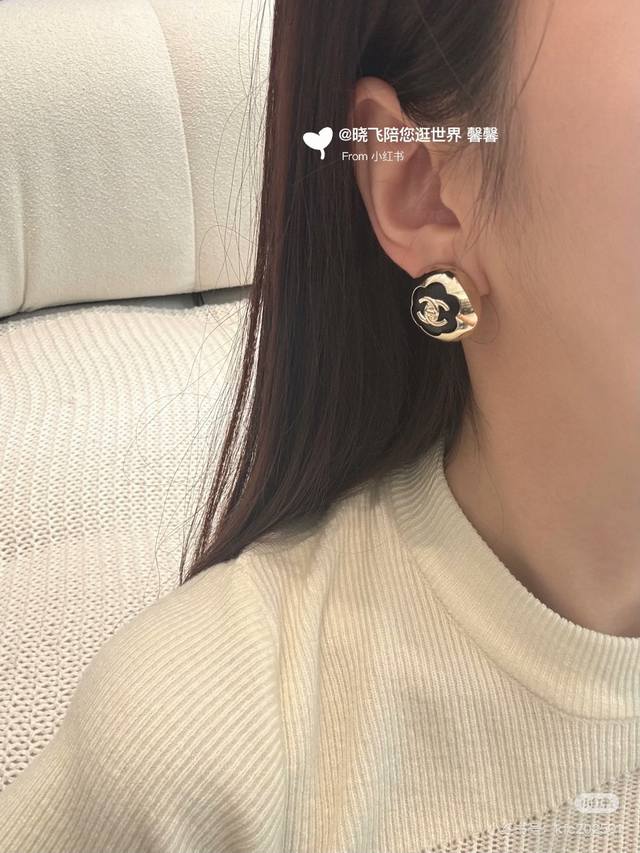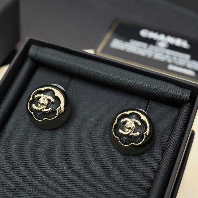 / 香奈儿25A手工坊羊皮山茶花纽扣耳钉 经典山茶花元素,复古时髦感直接拉满