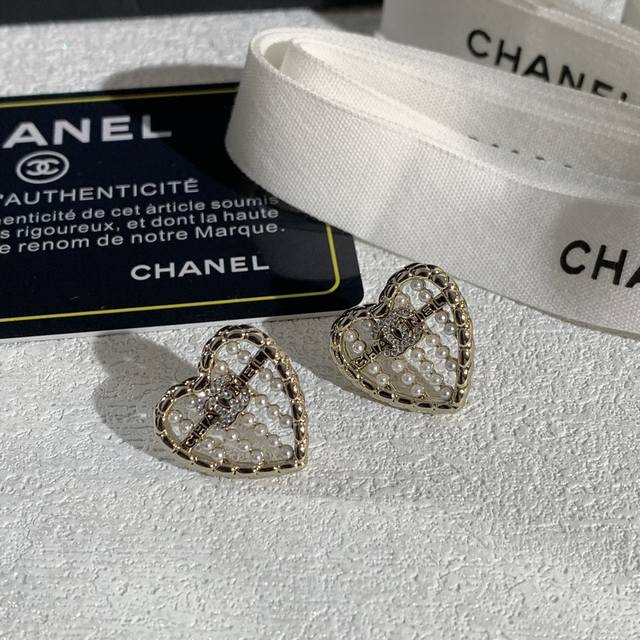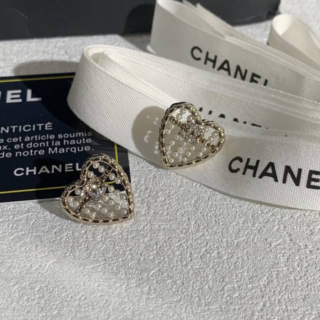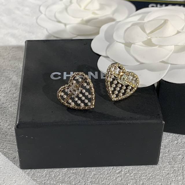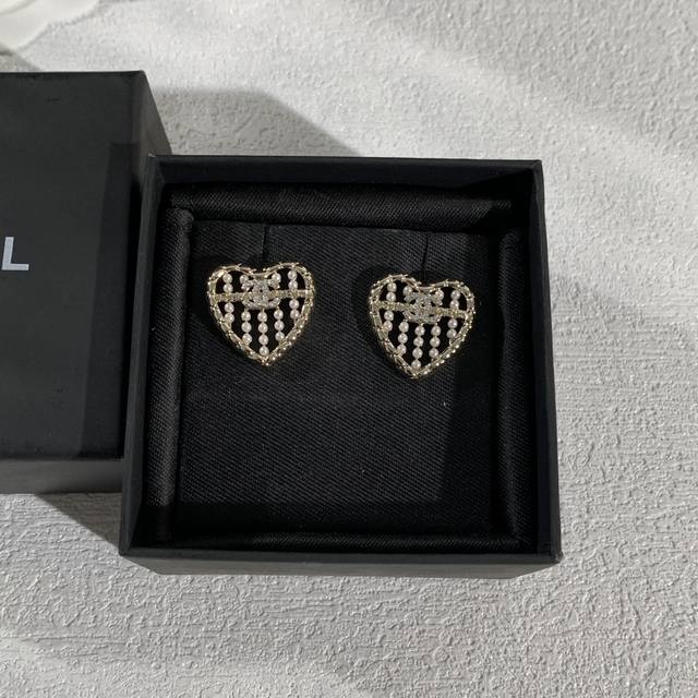 香奈儿爱心双C镶钻耳钉 DDD