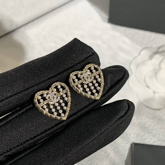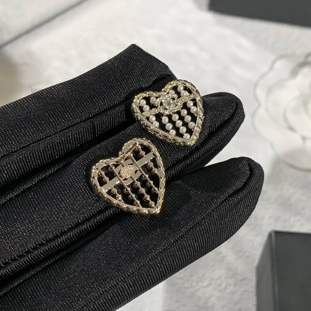 / 香奈儿Chanel 爱心耳环设计精巧,如25A镂空爱心款,淡金色菱格边框搭配满钻双心,精致复古。还有金色熔岩爱心款,镶嵌双C标志,尽显优雅奢华,是时尚搭配的点睛