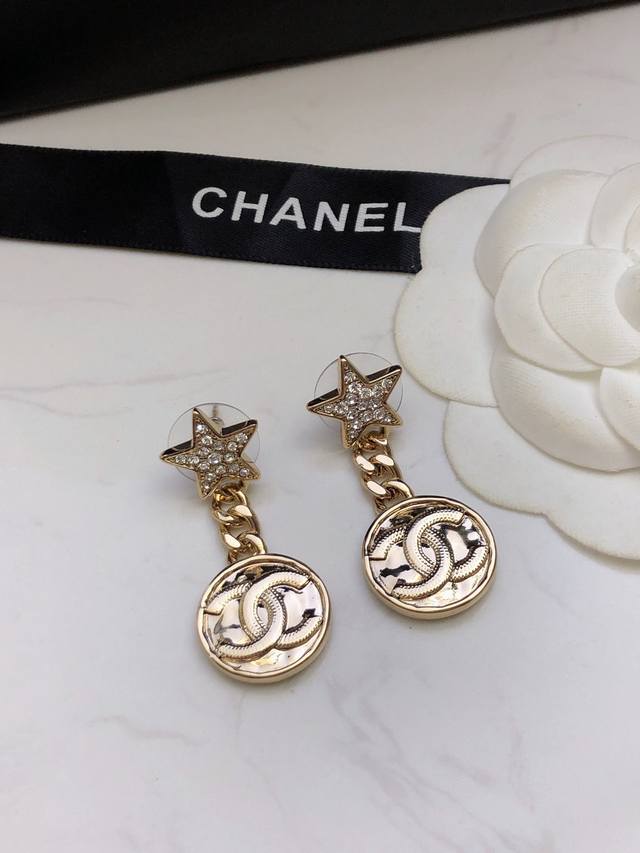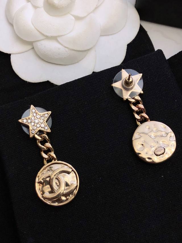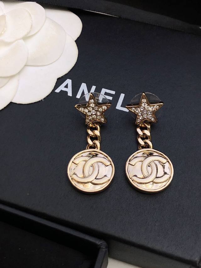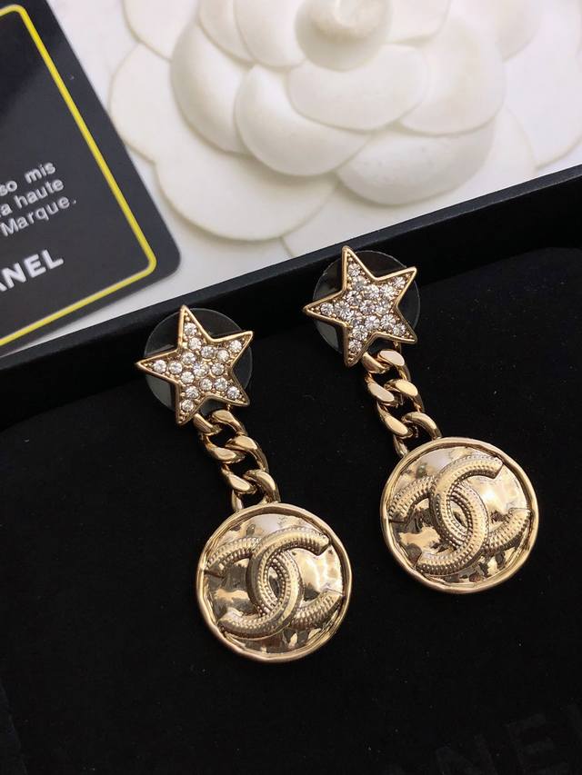 Chanel香奈儿星星耳钉 耳环热销款 市面最高版本!专柜1:1款式开模 925纯银针 专柜原版同亚金材质!小香经典Logo香奈儿耳吊 女神必备 超级显瘦耳钉