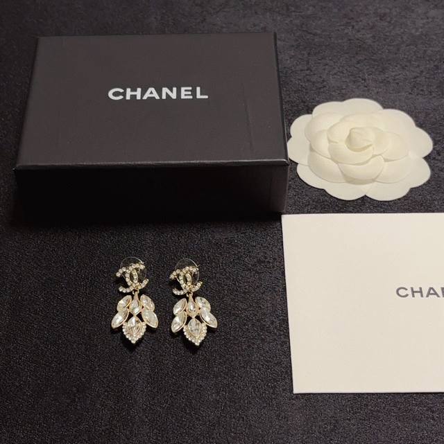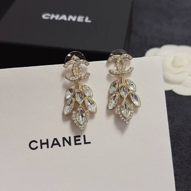 Chanel 小香简约风格水晶满钻树叶耳钉这款耳环真的超级美看着设计简单但是佩戴效果好看到爆就连我这种小耳垂的也很Ok Zp金钢保色材质 上耳超气质优雅