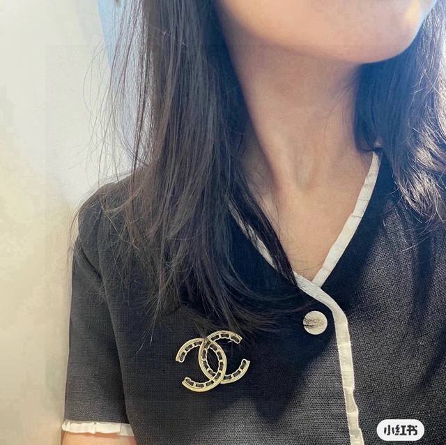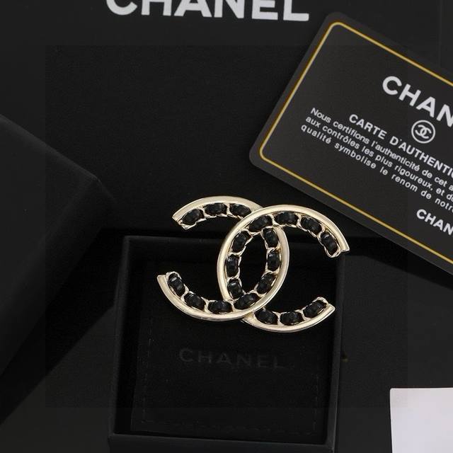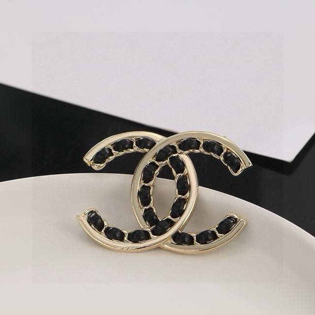 Chanel 小香 新款上市 双C黑皮胸针 经典之作爆款来袭 原版一致材质 闪闪惹人爱 Blingbling高碳钻镶嵌 美翻了 必须自留一个 胸针
