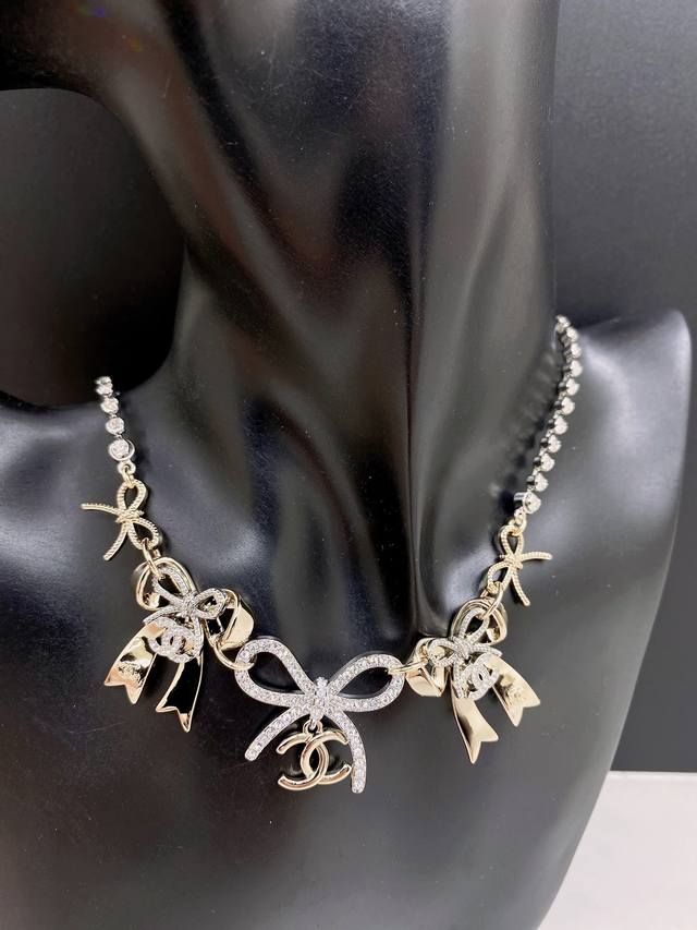 / Chanel 最新款双色蝴蝶结多元素项链 一致Z批黄铜材质