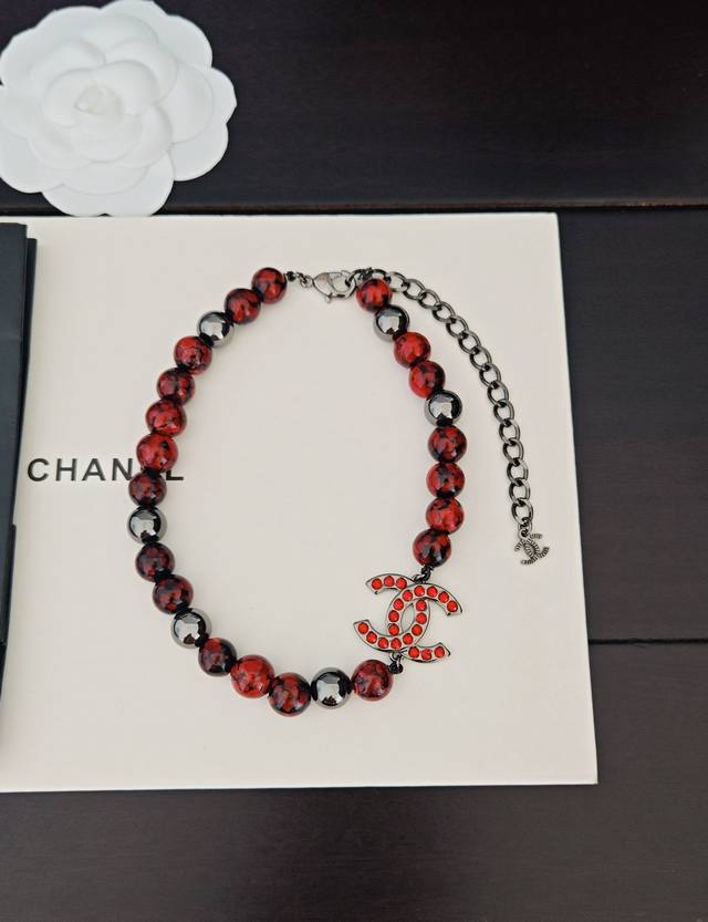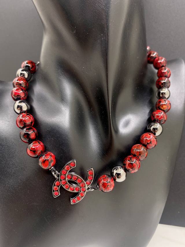 / Chanel 最新款枪黑红琉璃项链 一致Z批黄铜材质