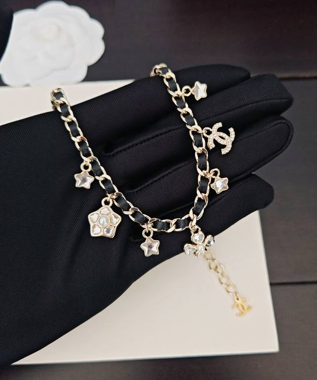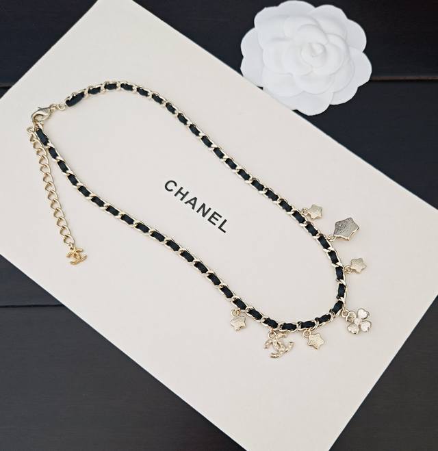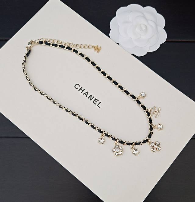 / Chanel 最新款白钻多元素黑皮项链 一致Z批黄铜材质