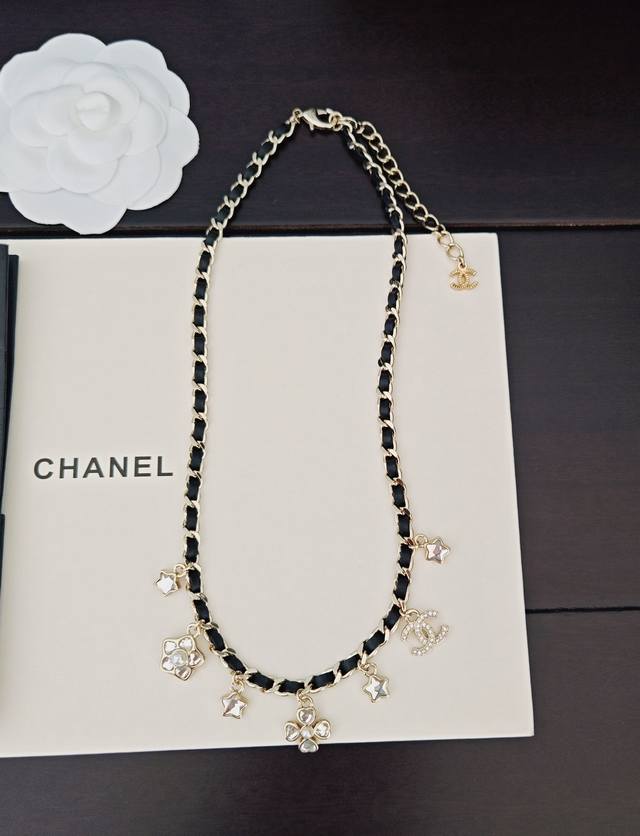 Chanel 最新款白钻多元素黑皮项链 一致Z批黄铜材质