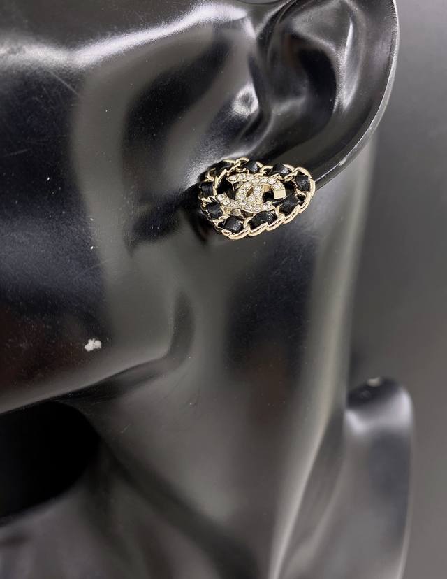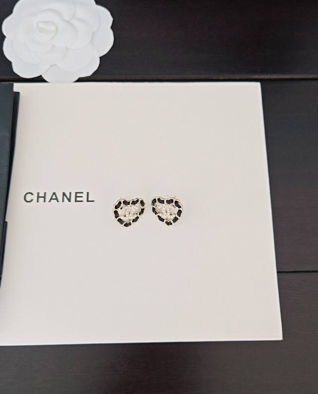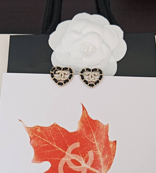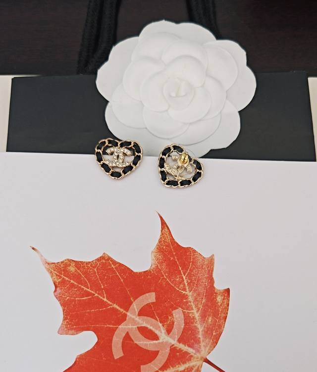/ Chanel 最新款黑皮镂空爱心耳钉 一致Z批黄铜材质