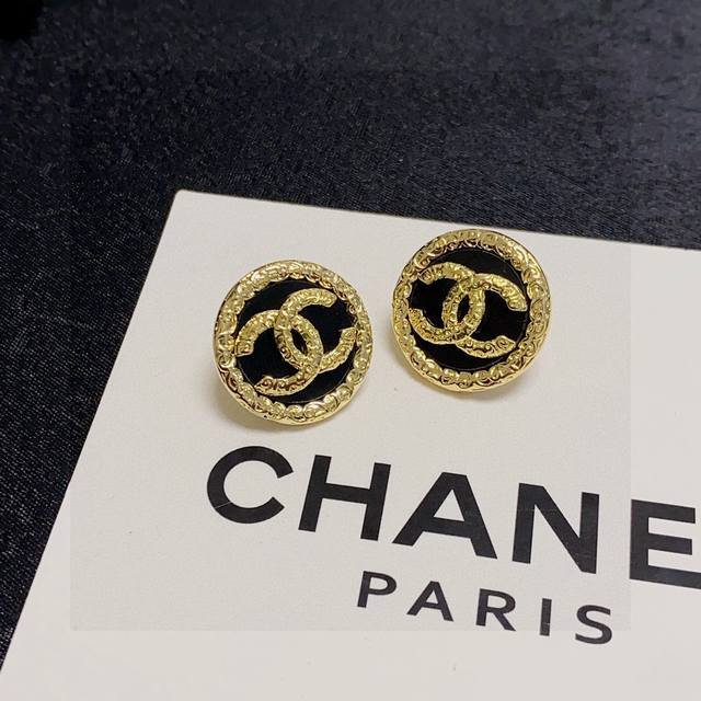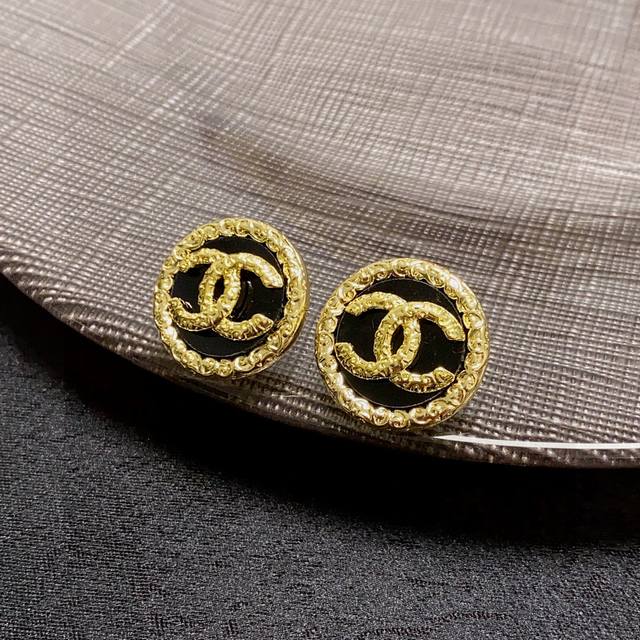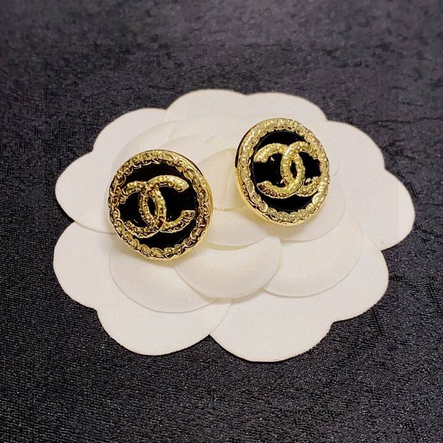 Chanel 香奈儿双C中古黑色耳钉 这款随意搭配都是非常好看百搭时尚单品 日常款 很修饰脸型 很上档次的 很优雅气质 香香的耳环实在是太精致了、淑女大气 真的 黄铜材质 9.25银针