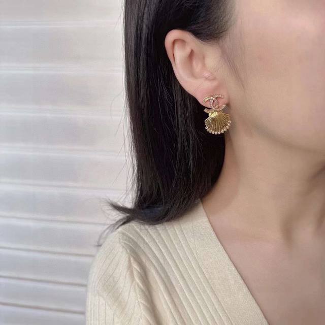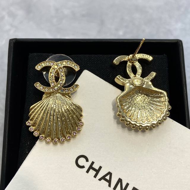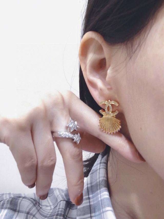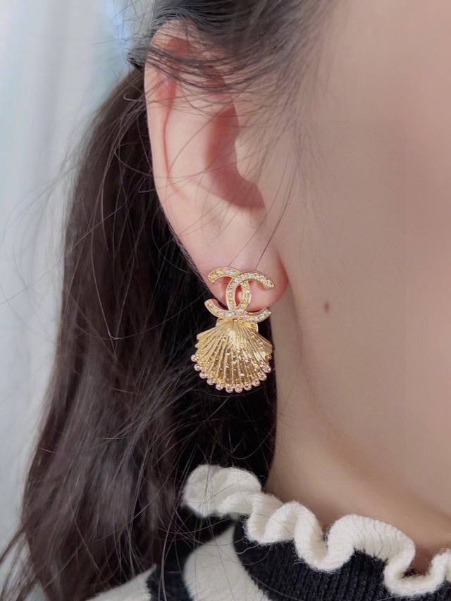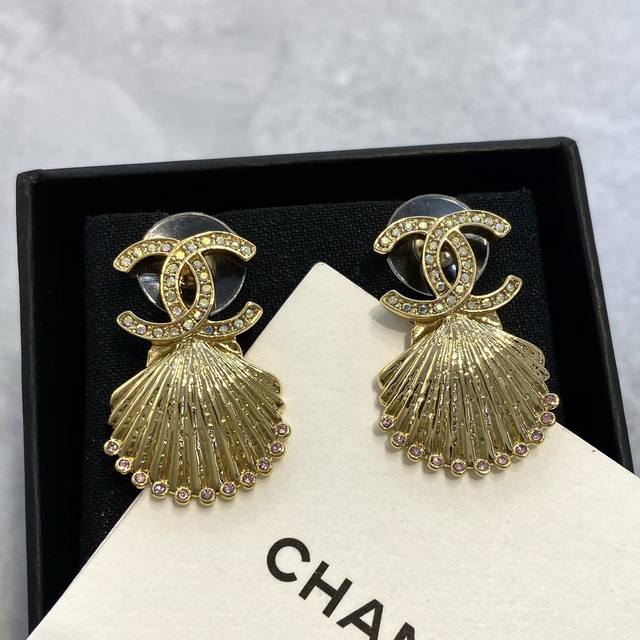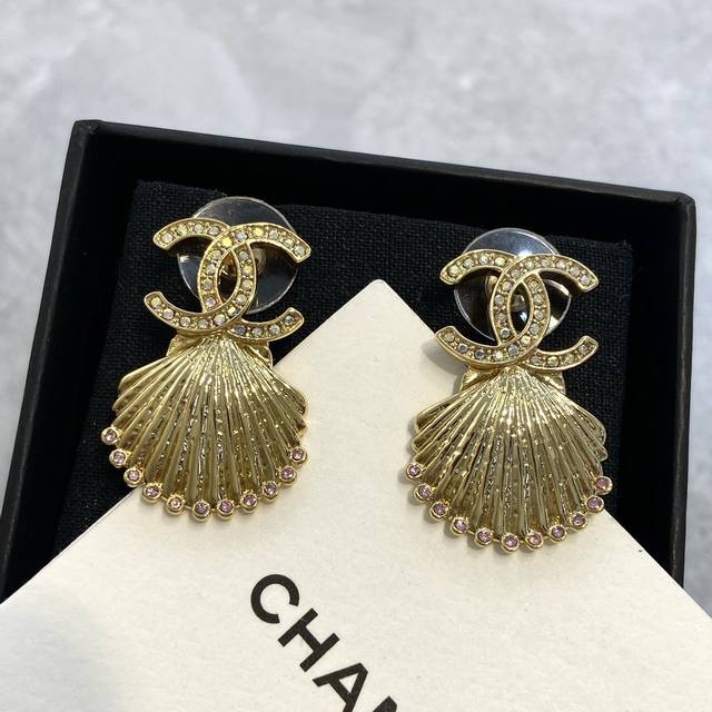 Ch Nel 香 儿 23C粉钻金贝壳耳钉