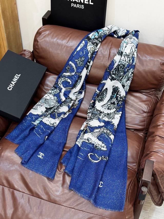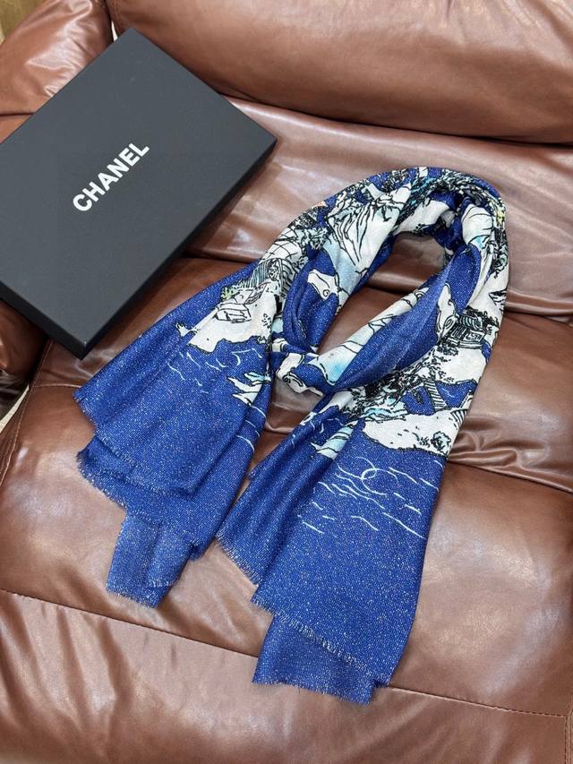 会发光发亮的围巾 2025秋冬高级成衣系列~Chanel 此系列谱写一曲自由轻灵的赞歌 本系列作品创新演绎品牌的风格符号 尽显无拘无束的自信魅力 优雅浪漫的风格设计 尺寸:100*200