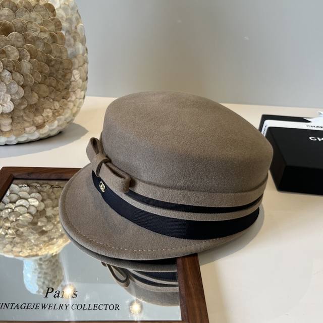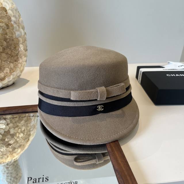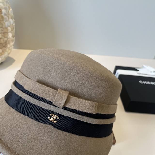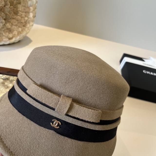 香奈儿 Chanel 英伦复古毛呢渔夫帽子女秋冬季优雅气质保暖盆帽时尚百搭显脸小潮