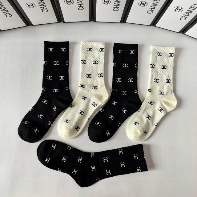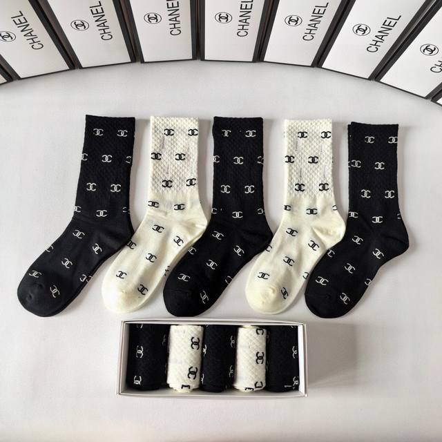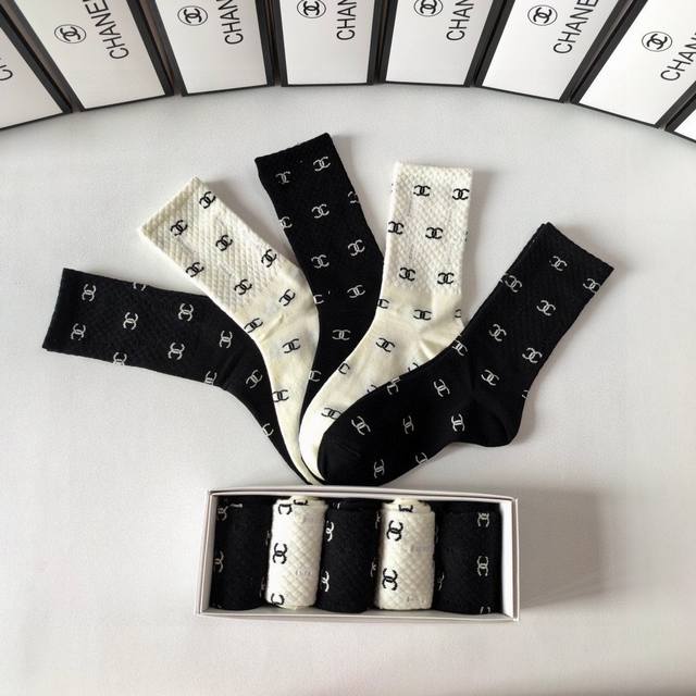 / 特 配专柜包装 Chanel 香奈儿 新款中长款堆堆袜袜子!一盒五双,专柜同步筒袜袜子,大牌出街,潮人必备超好搭
