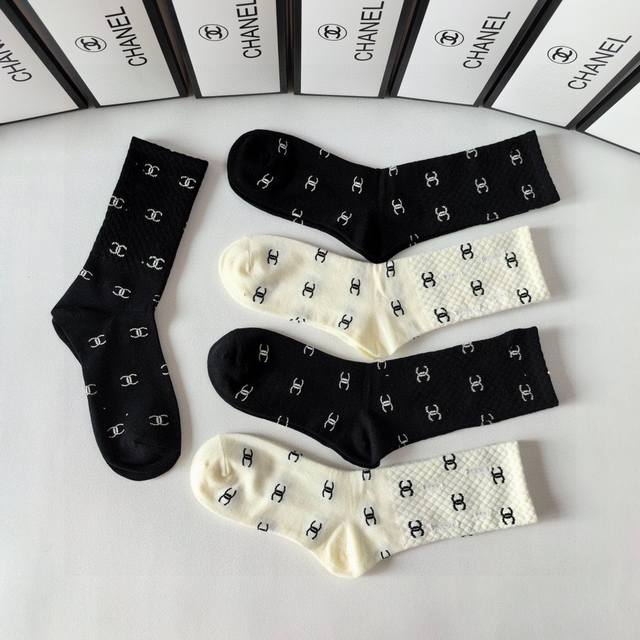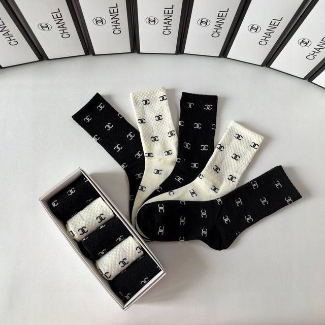 特 配专柜包装 Ddd Chanel 香奈儿 新款中长款堆堆袜袜子!一盒五双,专柜同步筒袜袜子,大牌出街,潮人必备超好搭 DDD