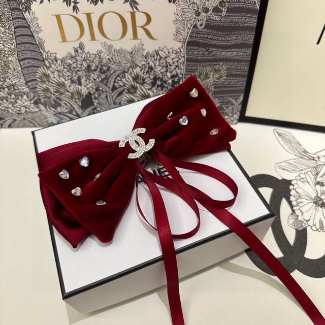 特 配专柜包装 Chanel 香奈儿 最新蝴蝶结中古水钻五金丝绒发夹# 信我!人手必备的单品 这件必须买 洋气神仙颜值 小仙女要收了它,谁戴谁好看~