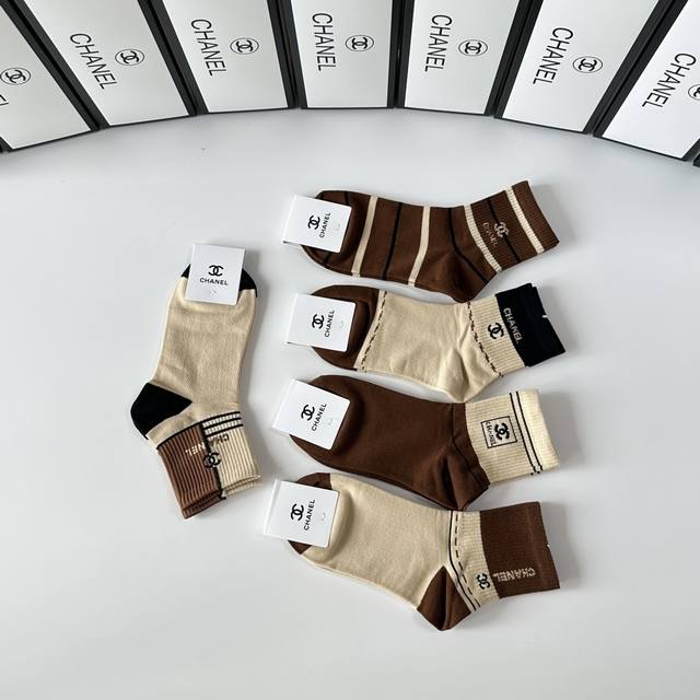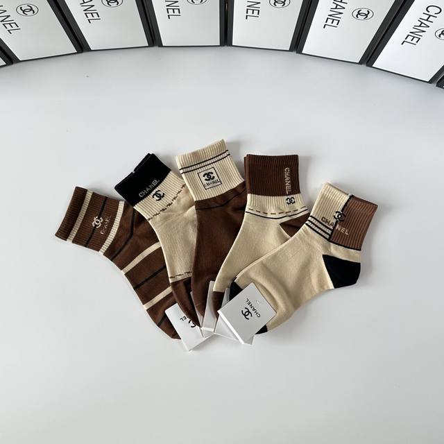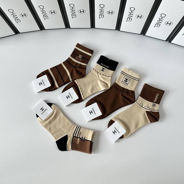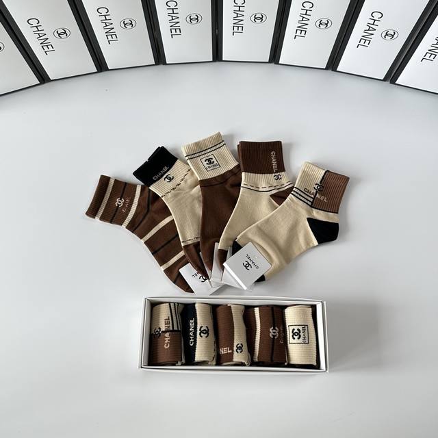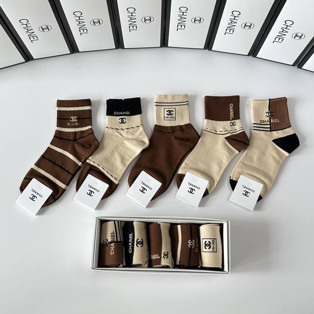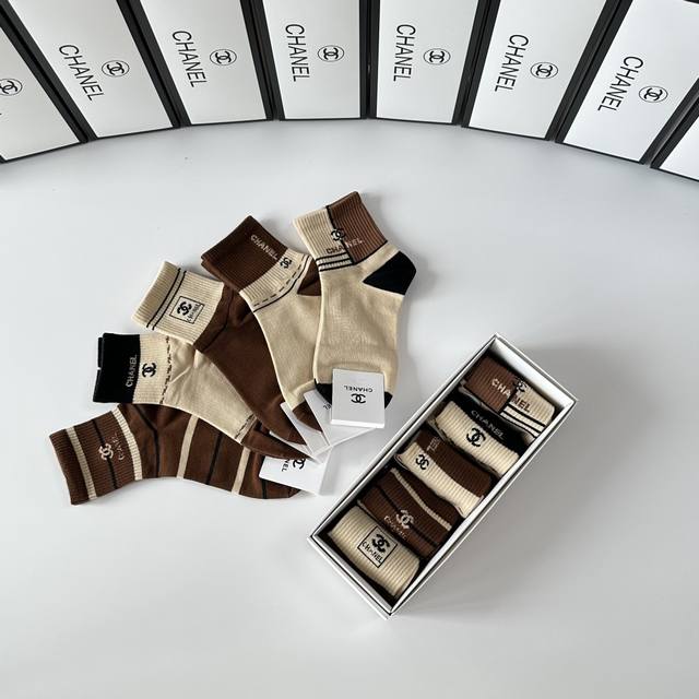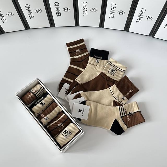 / 特 配包装 Chanel 香奈儿 新款经典中长款堆堆袜袜子!一盒五双, 专柜同步筒袜袜子,大牌出街,潮人必备超好搭。
