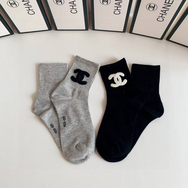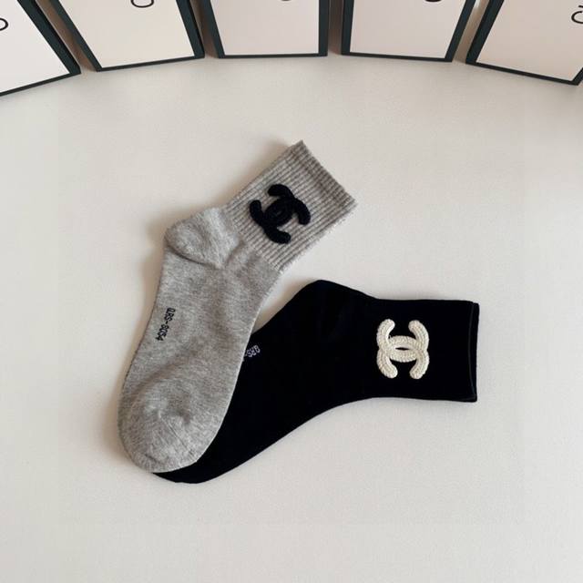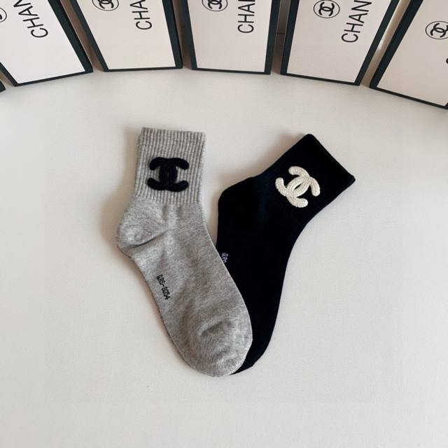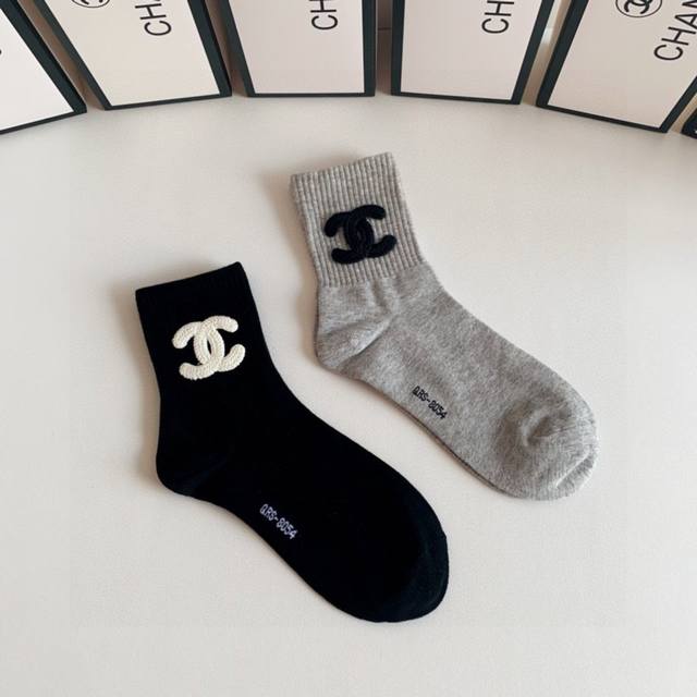 / 特 配包装 Chanel 香奈儿 网红爆款#新款袜中长款堆堆袜袜子!一盒两双,专柜同步筒袜袜子,大牌出街,潮人必备超好搭~