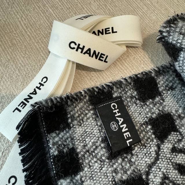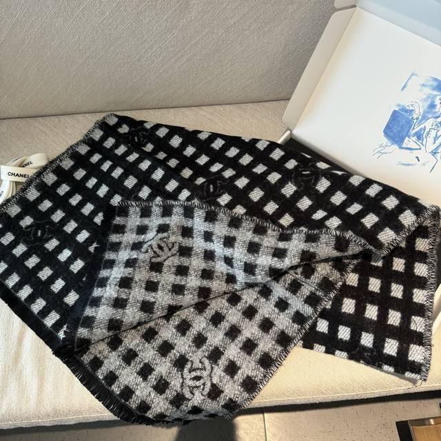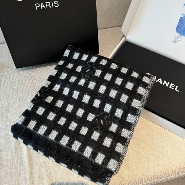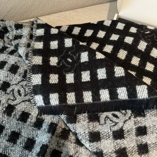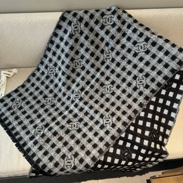 现货Chanel香奈儿24A新款女士黑白格子双C 羊绒流苏围巾围脖披肩 香奈儿绝美百搭款专柜限量哦有钱都很难订到顶级进口客供山羊绒,金银线镶边品质上乘送人自用绝对高大上独家实物拍摄!所见所得,颜色超正顶级好货不等人,特殊渠道货卖一个少一个绝对的顶级好货,任何一个细节都是专柜的节奏顶级进口客供山羊绒重磅推荐 65*180 DDD