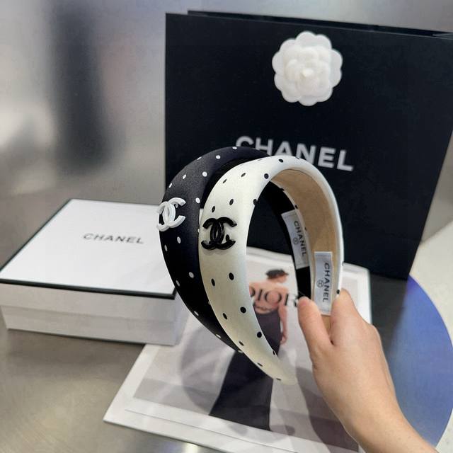 / 配包装盒 Chanel 香奈儿 最新小香波点发箍。简单实用,时尚潮流!小仙女必备