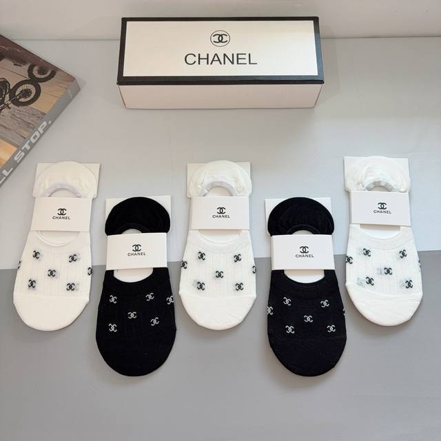 / 配包装 一盒5双 Chanel 香奈儿经典袜子高版本竹棉材质柔软,秒杀市场普通货,经典的双C图案Logo,专柜同步袜子大牌出街,潮人必备,超好搭