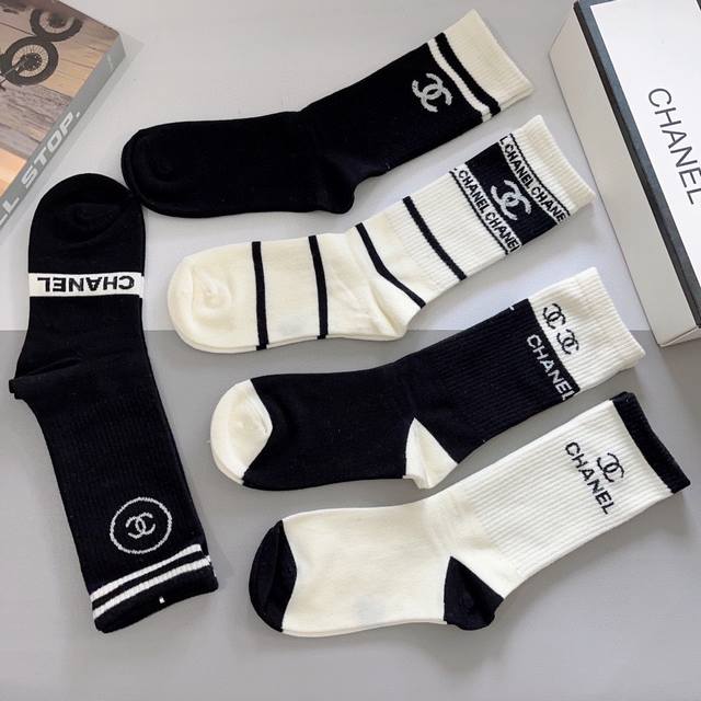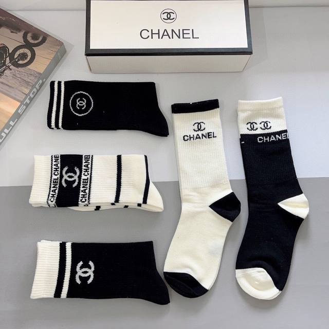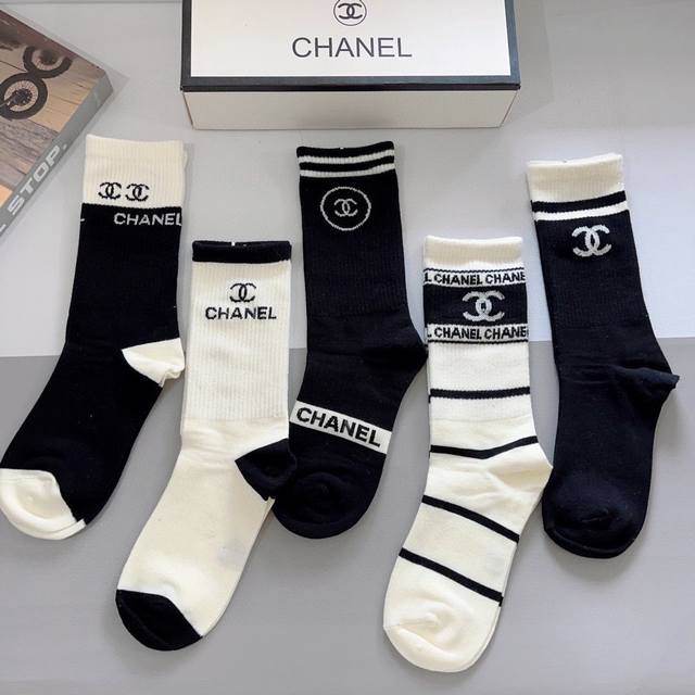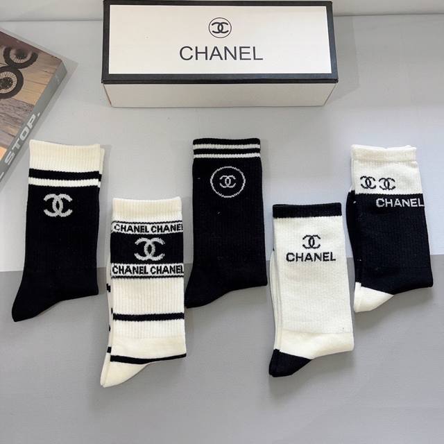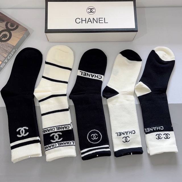 配包装 一盒5双 Ddd Chanel 香奈儿经典袜子高版本纯棉材质柔软长筒袜 秒杀市场普通货,经典的双C图案Logo,专柜同步袜子大牌出街,潮人必备,超好搭 DDD