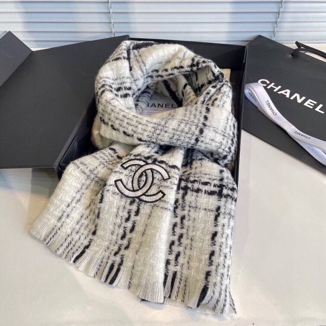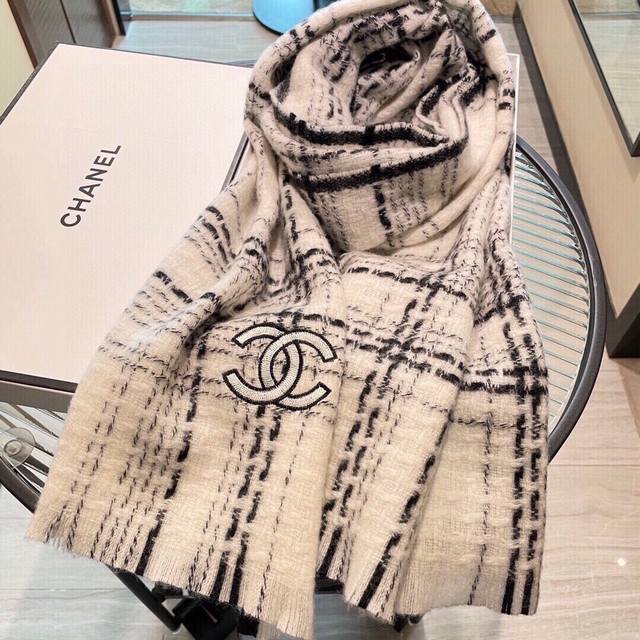 新款Coco香奈儿精纺羊绒字母提花围巾时尚大牌风格,做工精致,现货。上身效果超级棒。送礼自用超高性价比。Size: 30