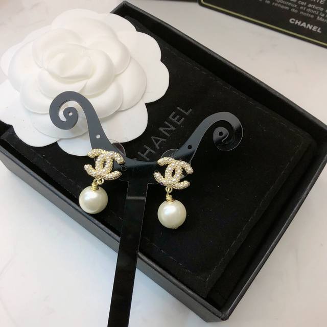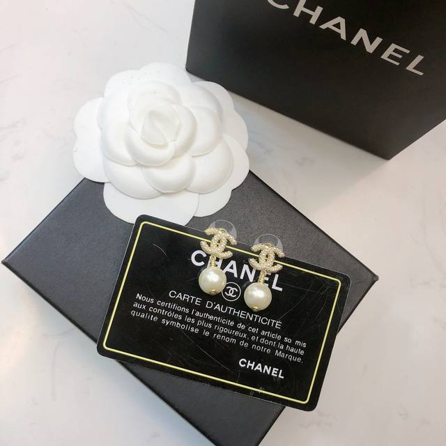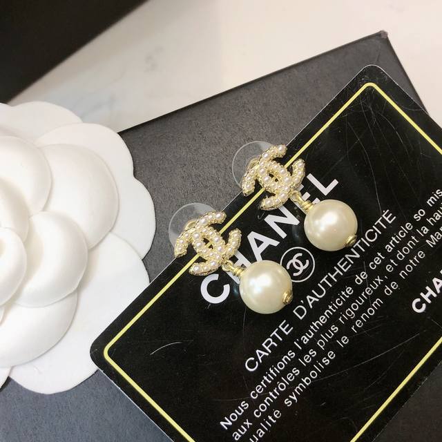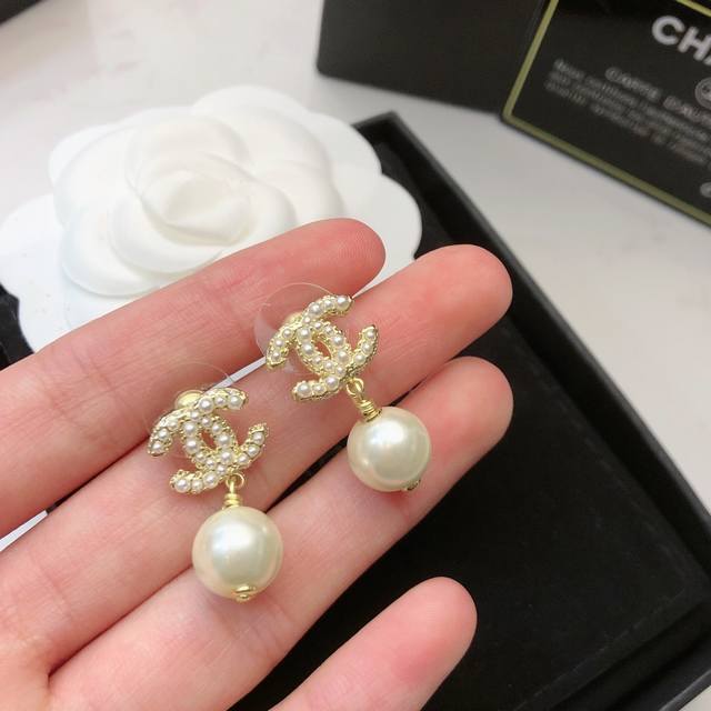 香奈儿百周年双C吊珍珠耳钉 以醒目的金色金属覆层“双C”标志,周围闪烁着白色仿水晶。华丽惊艳,时尚百搭,为造型赋予优雅气质。又一款吸睛的单品.