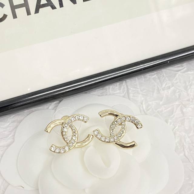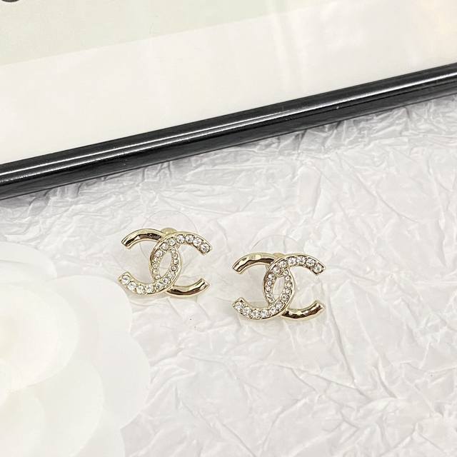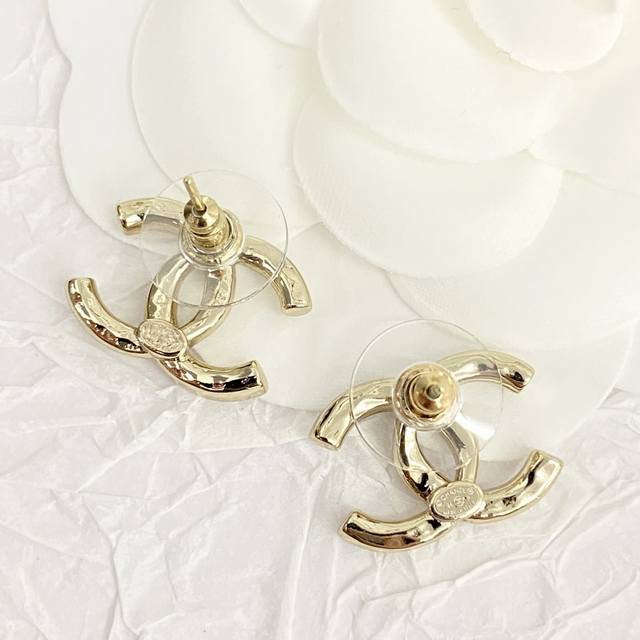 香奈儿耳钉热销款爆上新一致Zp,专柜同步 Chan 24 淡金色扭纹半钻双C耳钉 经典高级,极简气质 小小香槟金,低调又不失奢华美~