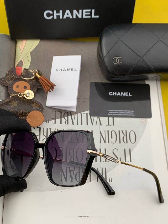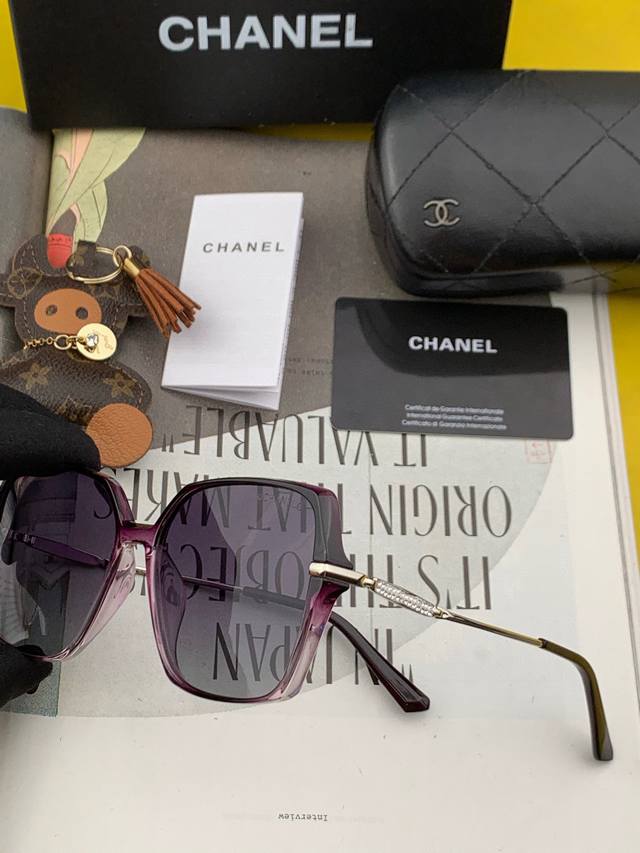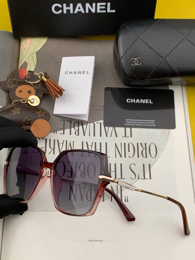 香奈儿 太阳镜 开春新品超轻墨镜众多博主网红都有配戴的 很有设计感 超前时尚 镜腿立体感十足 处处彰显香奈儿的风格精髓 镶钻款 高档太阳镜 完美 高品质 型号: