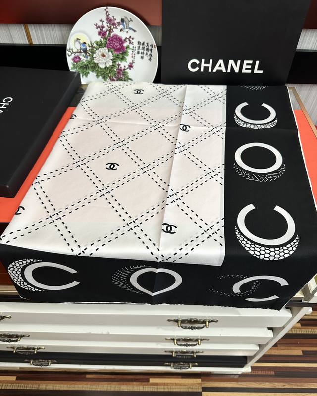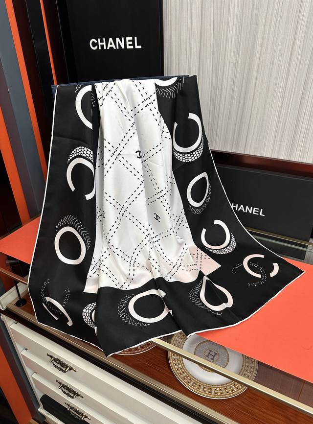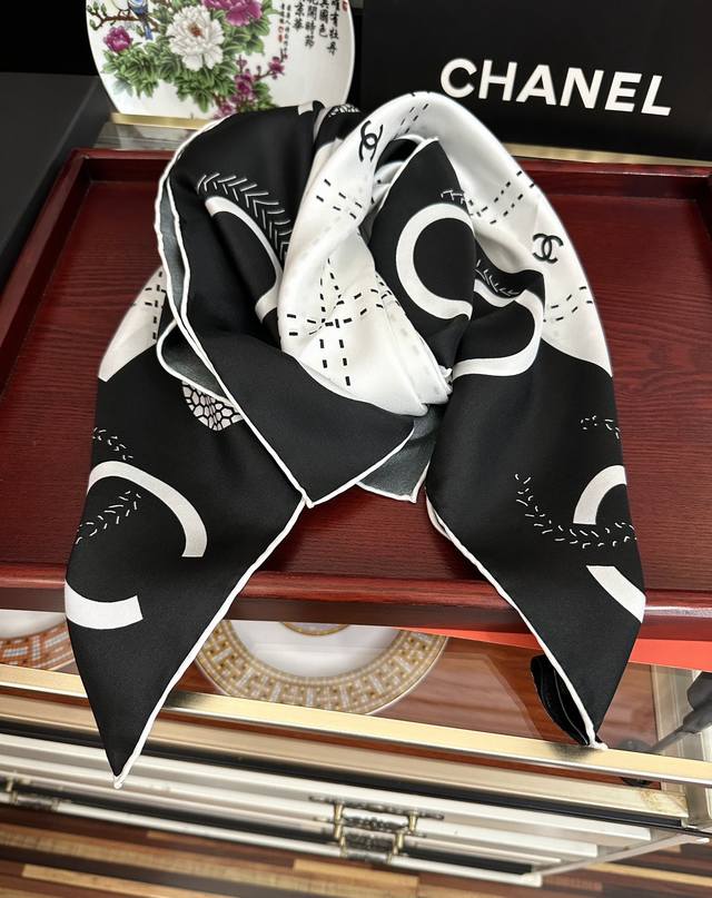 香奈儿 官网同步 精致手工卷边 极具品牌特色的涂鸦签名暗纹提花+简洁的Coco字母元素印花 大幅菱格点缀[嘴唇]配色复古高级 体现优雅风范的点睛之笔 无论流行什么色 经典黑白色永远走在时尚尖端怎么搭配都好看 尺寸:90X90 ,材质:真丝,2色