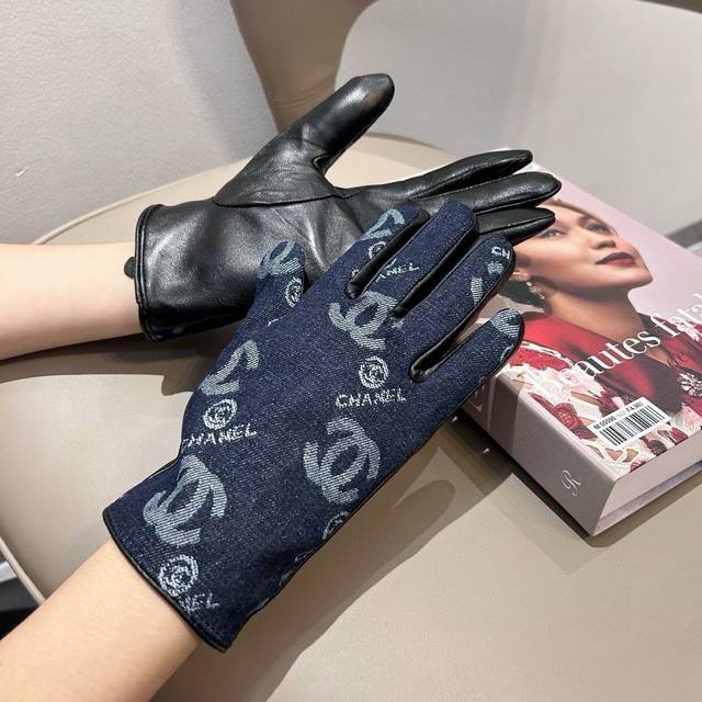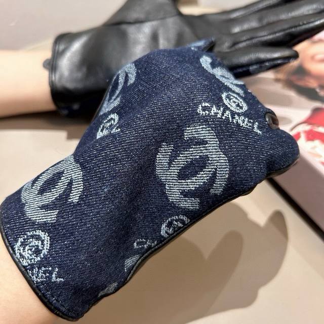 / 2025香奈儿新品短款牛仔布加羊皮手套,时尚机车手套,秋冬新品布内里,时尚上手超舒适柔软、百搭!集美女神必备配盒子码数Ml