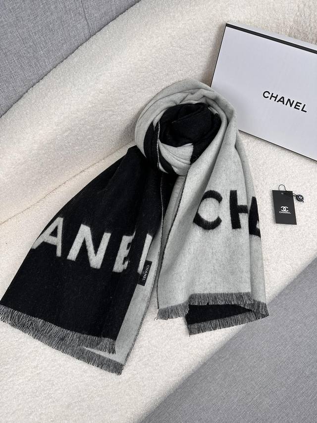 C家。Chanel经典配色!围巾披肩两用双面可以围出不同风格! DDD 材质:100%羊羔毛, DDD 尺寸:65Cm*195Cm DDD