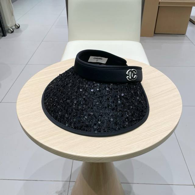 / Chanel香奈儿新款夏季防晒帽遮阳防紫外线空顶帽百搭遮阳帽女黑胶大檐太阳帽子