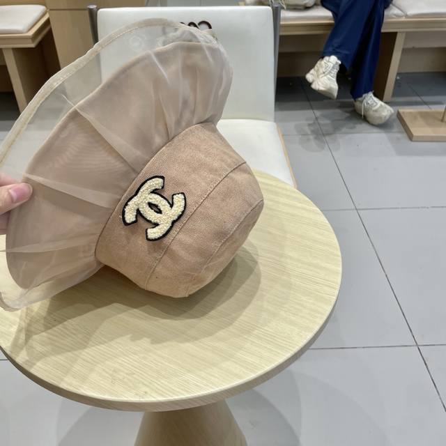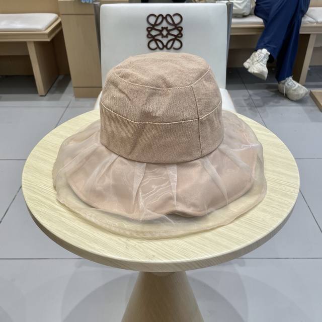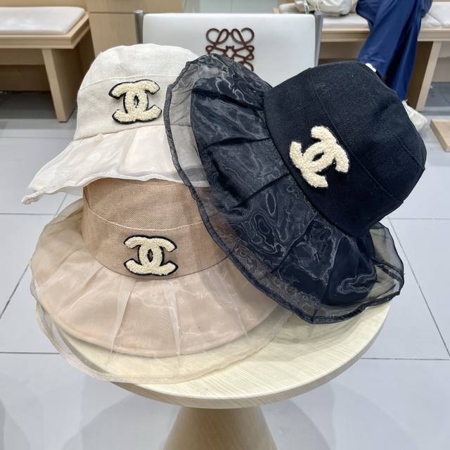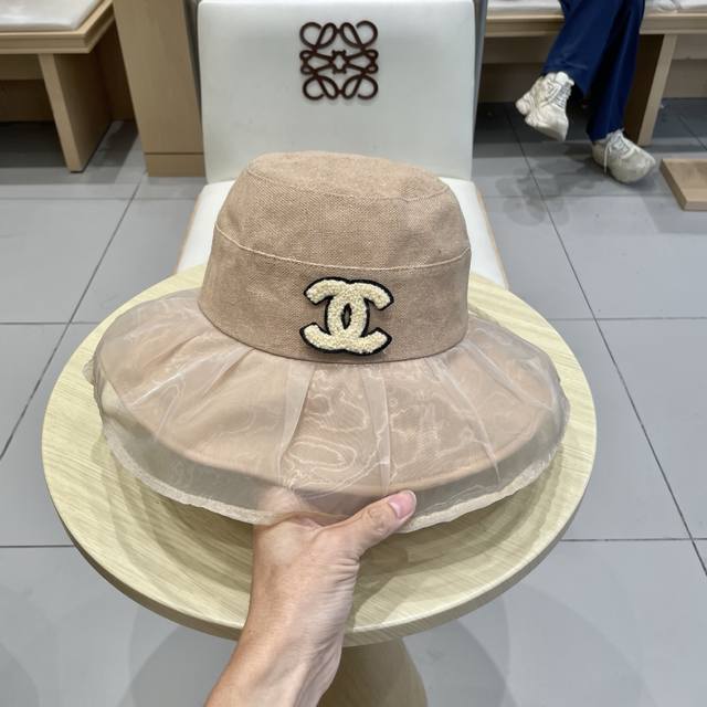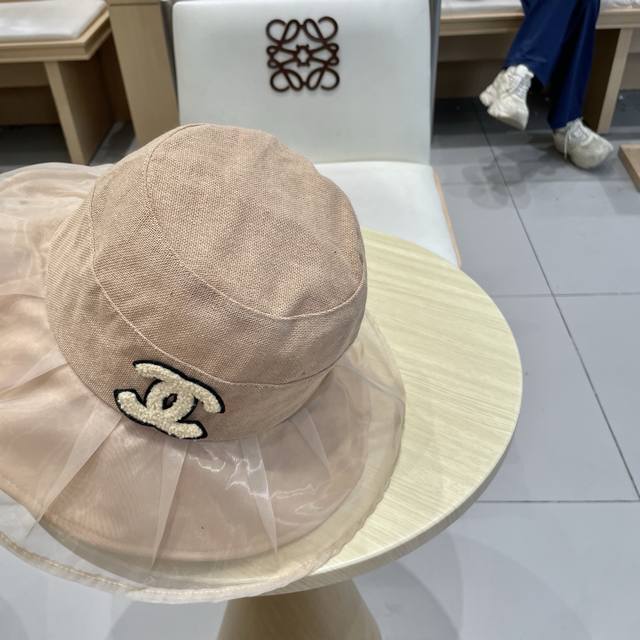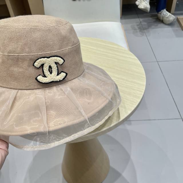 / Chanel香奈儿柔纱双层帽檐渔夫帽女夏唯美韩版遮阳帽透气仿和纸女帽子洋气盆帽
