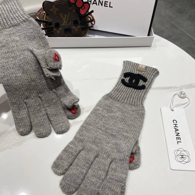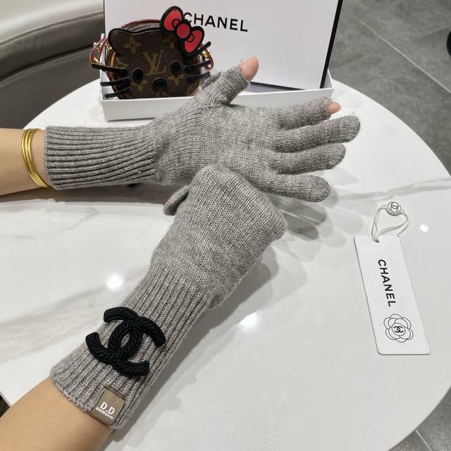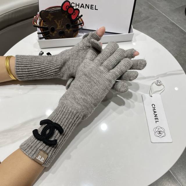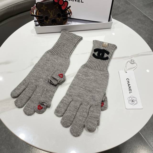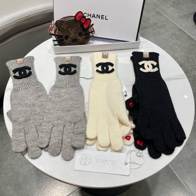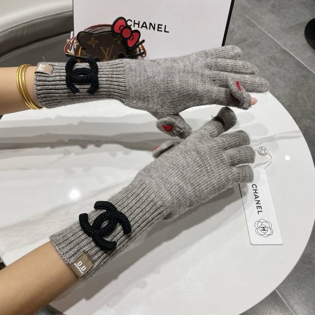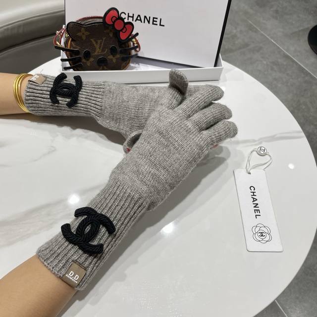 / Chanel香奈儿笑脸刺绣针织毛线手套女冬季户外骑行保暖防寒加长五指可触屏