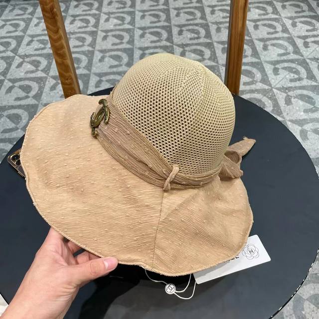 Chanel香奈儿防晒渔夫帽女士2025遮脸登山防紫外线夏大檐太阳骑车遮阳帽子海边