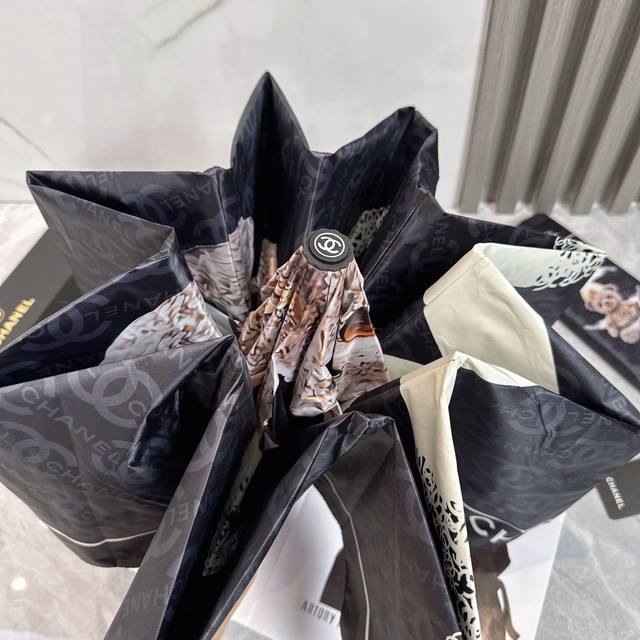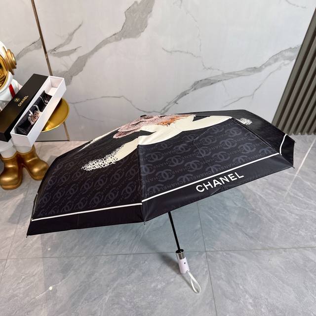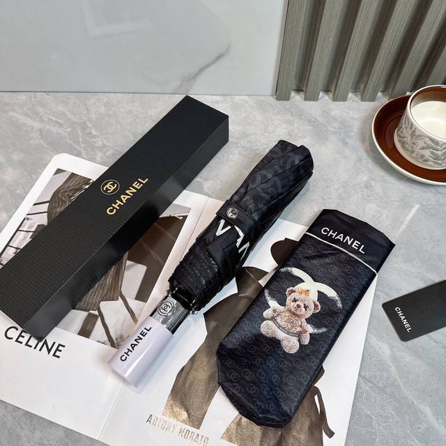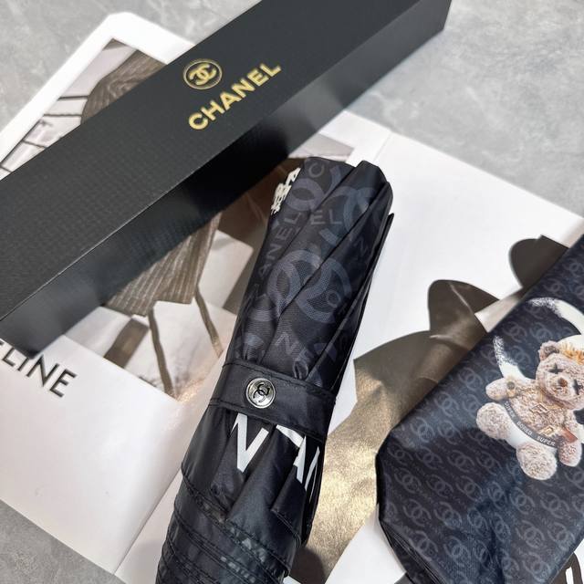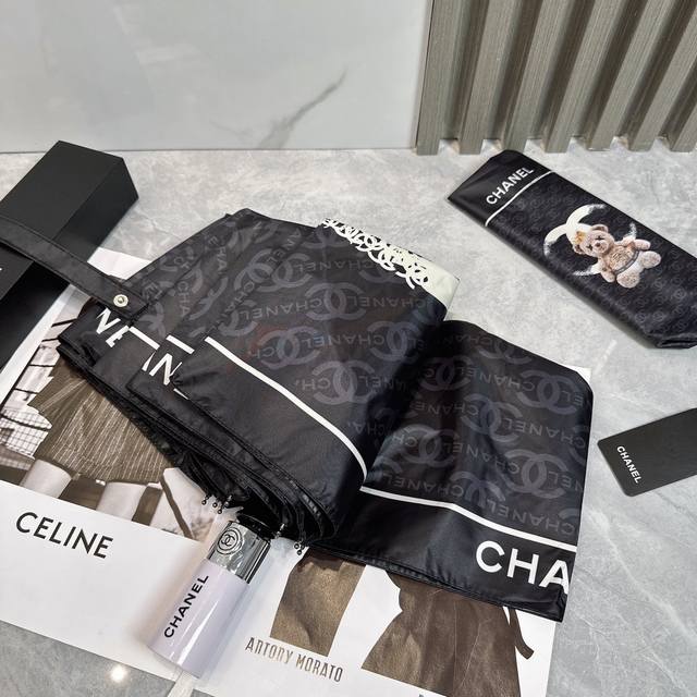 / Chanel 香奈儿 公主熊 夏季新款 全自动折叠晴雨伞 黑色涂层防晒有效阻隔紫外线99%,Upf 50 所以能起到伞下体感降温的效果!有效隔热,高效防晒一把搞