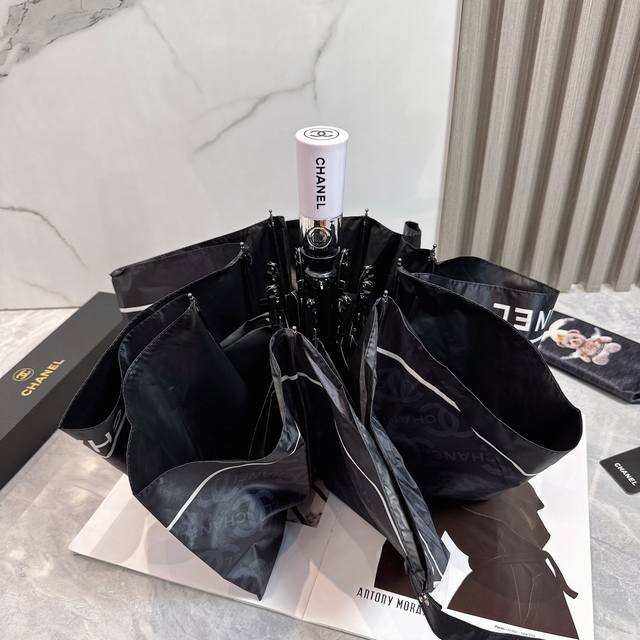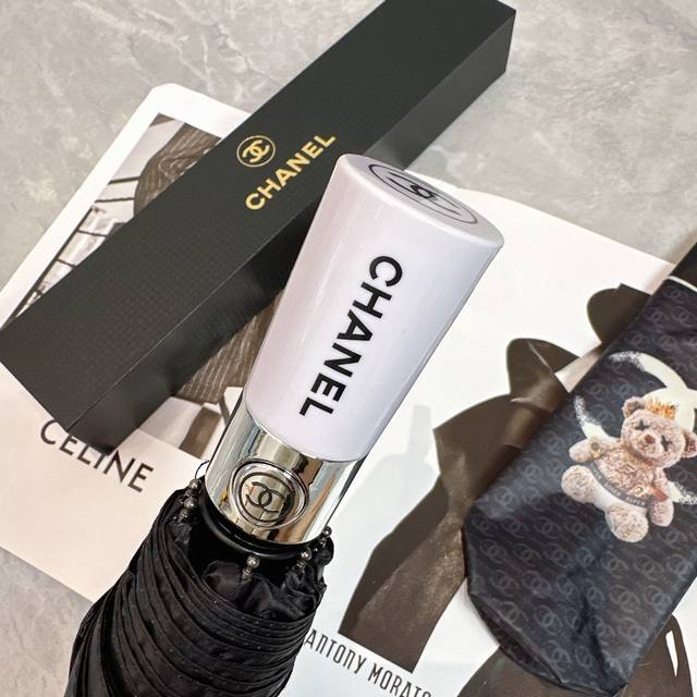 Chanel 香奈儿 公主熊 夏季新款 全自动折叠晴雨伞 黑色涂层防晒有效阻隔紫外线99%,Upf 50 所以能起到伞下体感降温的效果!有效隔热,高效防晒一把搞定,超轻全吕材质自重很轻宽度直径102Cm 礼盒装