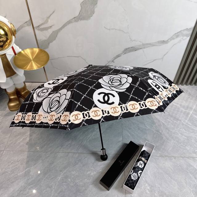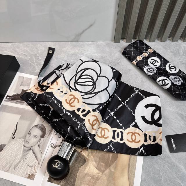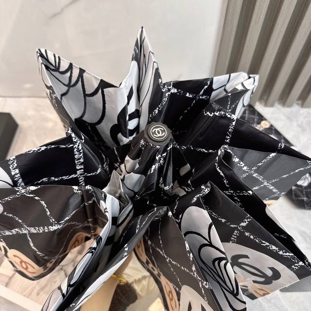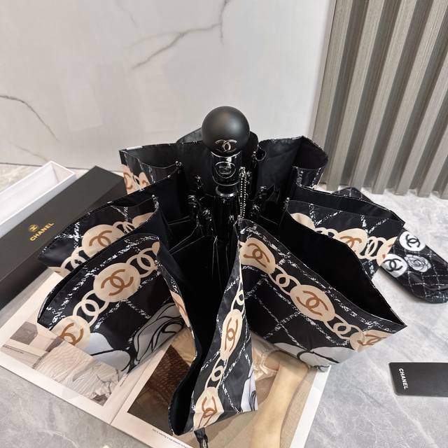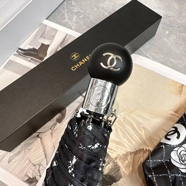 / Chanel 香奈儿 夏季新款 全自动折叠晴雨伞 黑色涂层防晒有效阻隔紫外线99%,Upf 50 所以能起到伞下体感降温的效果!有效隔热,高效防晒一把搞定,超轻