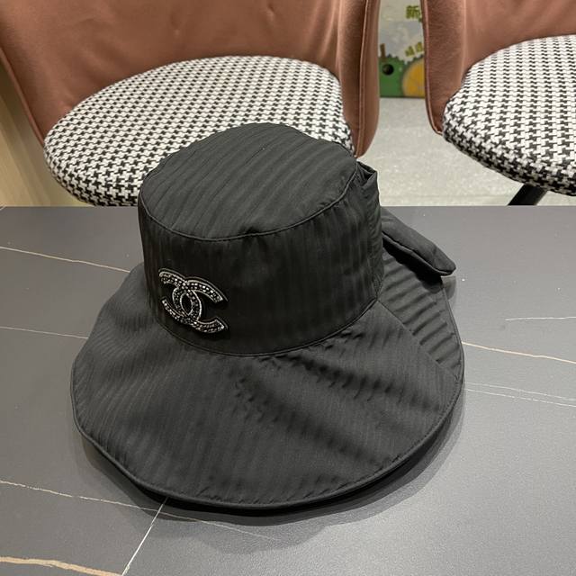 / Chanel 香奈儿 2025夏季新款条纹蝴蝶结帽子女休闲百搭渔夫帽户 外遮阳防晒太阳帽