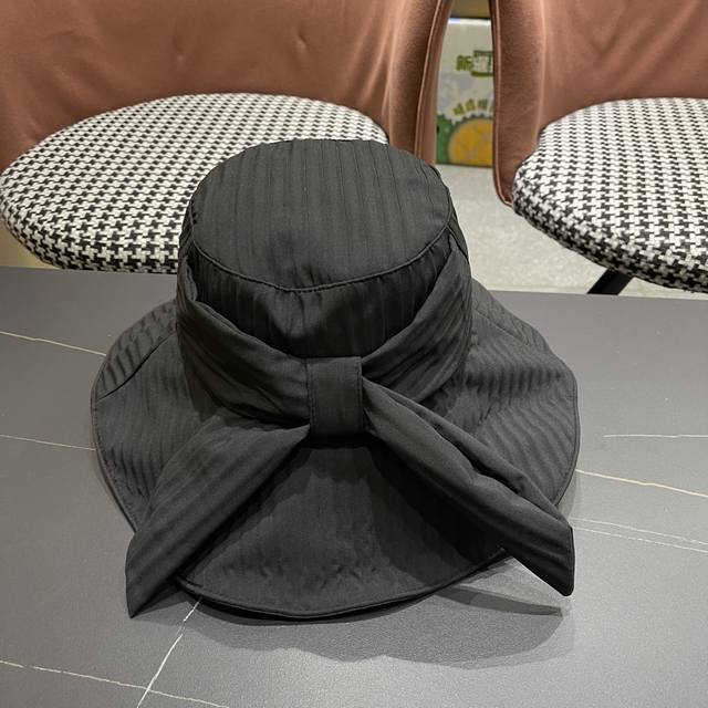 Chanel 香奈儿 2025夏季新款条纹蝴蝶结帽子女休闲百搭渔夫帽户