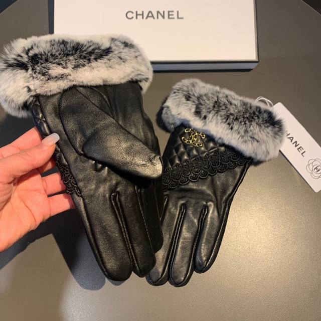 Chanel 香奈儿2025蕾丝双C秋冬懒兔毛羊皮手套手机触屏,值得对比同款不同品质,秒杀市场差产品,进口一级羊皮懒兔毛内里加绒 经典不过时款.喜欢可以入手了,