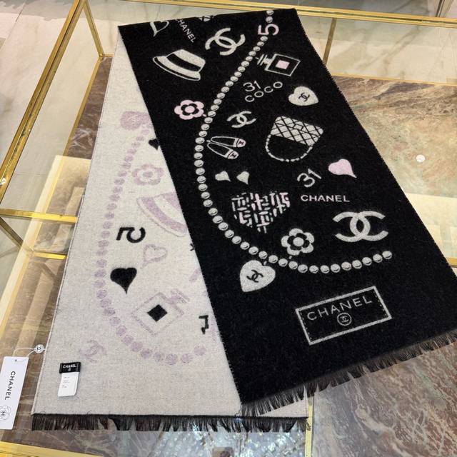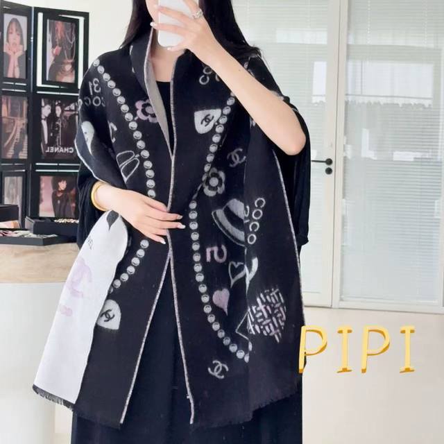 上新香奈儿2025 顶级设计太美了,官网同步,真心赞 双C标志羊绒长巾 实物真心美...