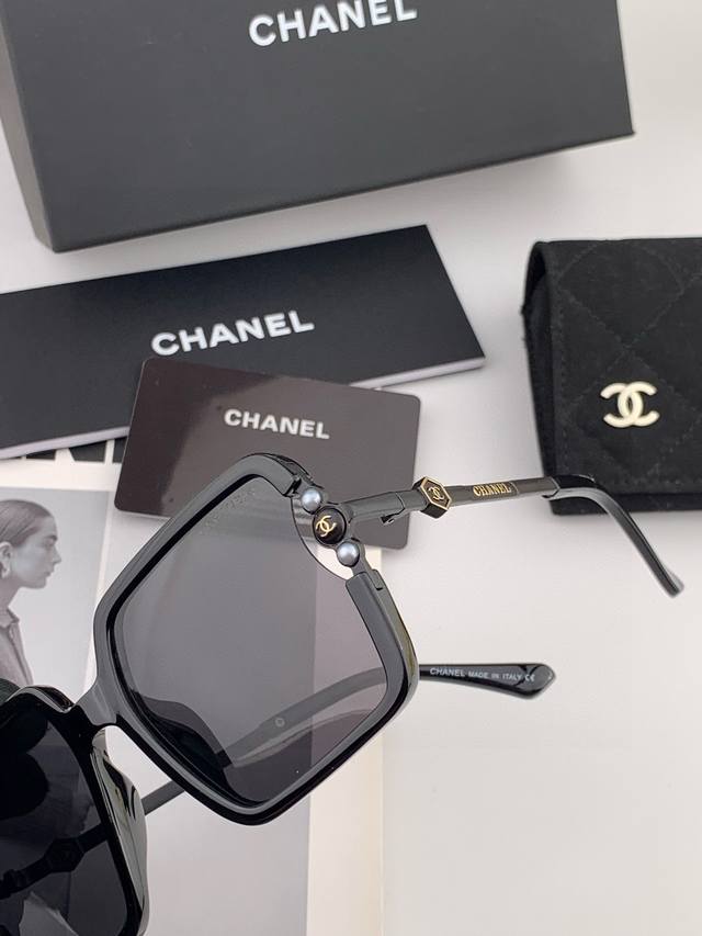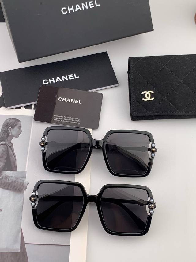 Chanel2025官方早春新款,众多明星同款 香奈儿新款大框偏光墨镜 ,镜腿Logo小珍珠宝丽来超清偏光太阳镜型号:Ch0066