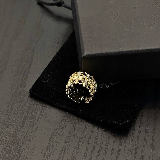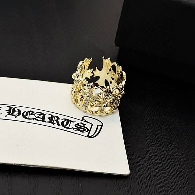专柜品质 Chrome Hearts克罗心满钻十字花戒指 凹凸造型不同的花纹设计风格呈现出与众不同 十字架童军花是克罗心的标志 所以更经久不衰 正品打版Chro