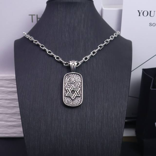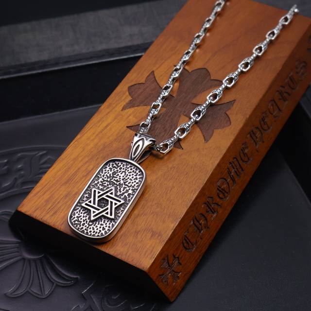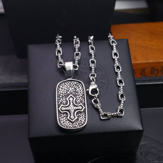 新款 专柜品质 Chrome Hearts克罗心复古十字架项链 方牌十字架吊坠 凹凸造型不同的花纹设计风格 呈现出与众不同 十字架...