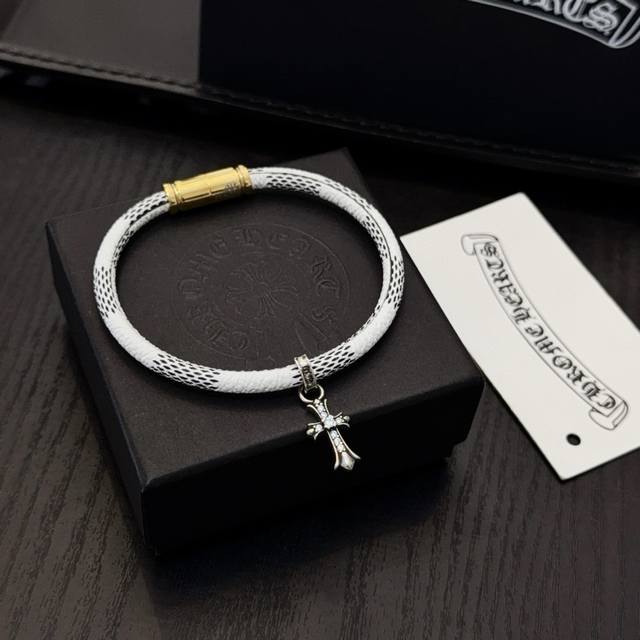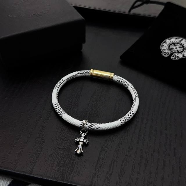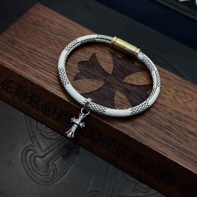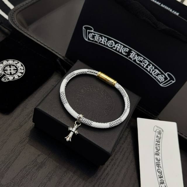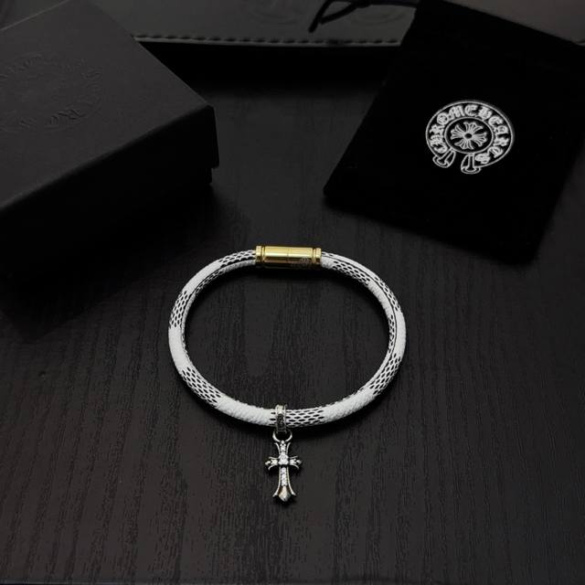新款 专柜品质 Chrome Hearts克罗心十字架皮绳手绳,凹凸造型不同的花纹设计风格 呈现出与众不同 十字架 童军花是克罗心的志 所以更经久不衰 正品打版