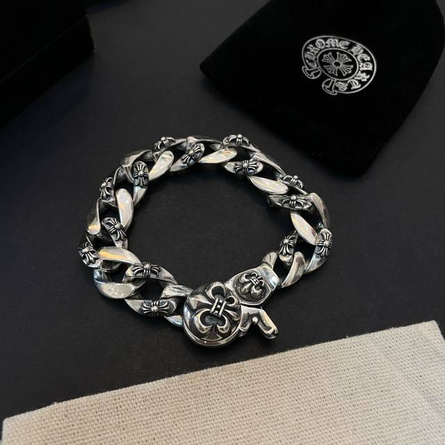 FFF 新款 专柜品质 Chrome Hearts克罗心经典复古十字架童军花虾扣手链 凹凸造型不同的花纹设计风格 呈现出与众不同 十字架 童军花是克罗心的志 所以更经久不衰 正品打版Chrome Hearts克罗心 区别市场普通轻版 对版对标品质 看字印细节 复古做旧灰氧程度.精工版本!!! 纯手工打造 ~正品开模潮流时尚必备 男女均可佩戴 情侣同款 官网原版 摇滚朋克泰银风格 复古元素 潮流百搭! DDD