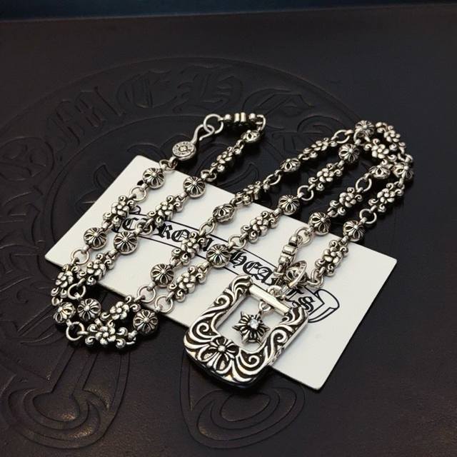 新款 专柜品质 Chrome Hearts克罗心经典复古十字花球项链 方牌吊坠 凹凸造型不同的花纹设计风格 呈现出与众不同 十字架 童军花是克罗心的志 所以更经久不衰 正品打版Chrome Hearts克罗心 区别市场普通轻版 对版对标品质 看字印细节 复古做旧灰氧程度.精工版本!!! 纯手工打造 ~正品开模潮流时尚必备 男女均可佩戴 情侣同款 官网原版 摇滚朋克泰银风格 复古元素 潮流百搭!